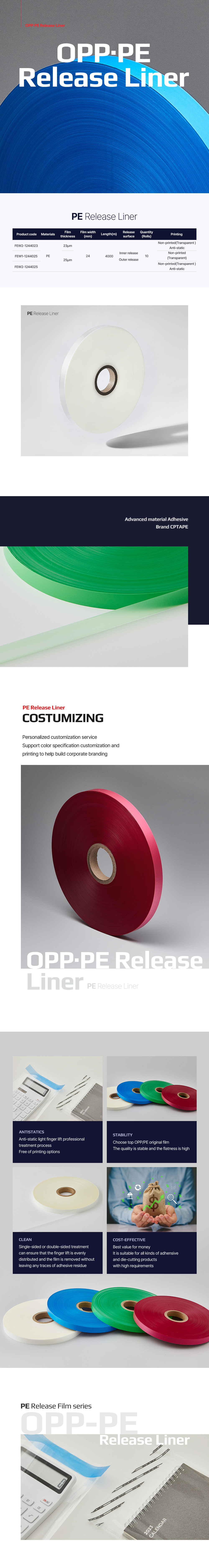 Personalized selection of color, specification and pattern to fully match the needs of the enterprise packaging line